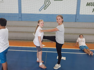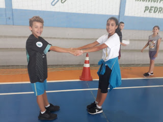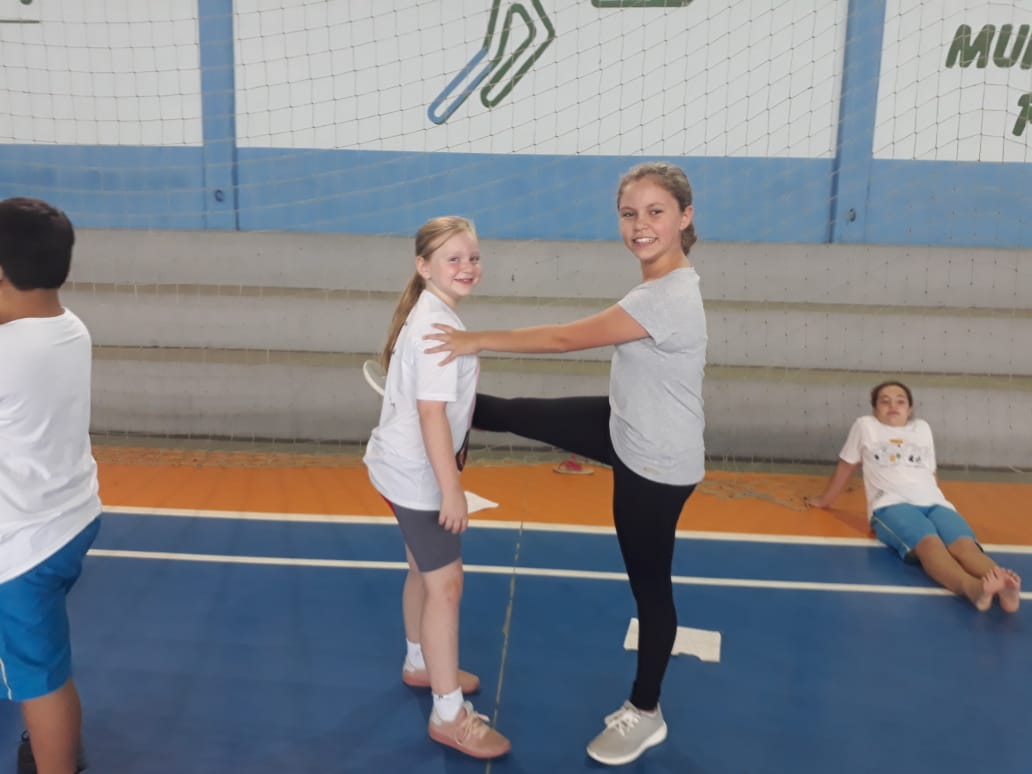 Nas aulas de Educação Física do 5º e 6º ano a Profª Silvania trabalhou o "alongamento". O objetivo da prática foi participar dos exercícios corporais que visam o trabalho em equipe, o fortalecimento muscular, a elasticidade, coordenação, força e equilíbrio. Além disso, estimulam a colaboração entre os alunos e a responsabilidade.